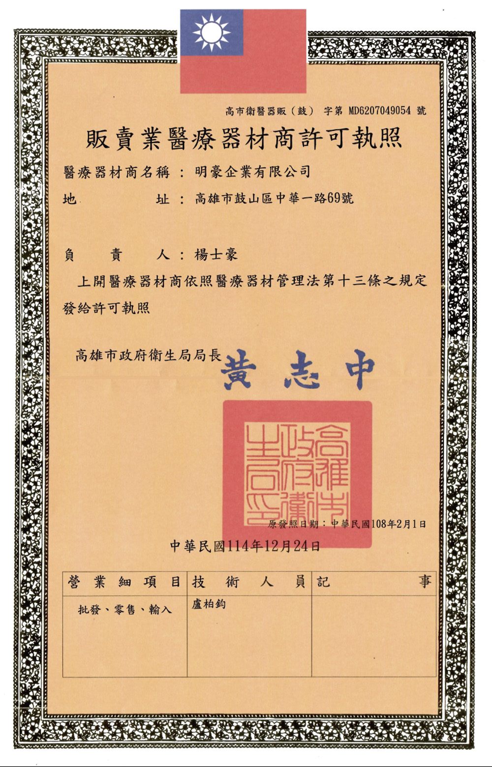 | 醫療器材許可證 | 醫療器材許可證 |